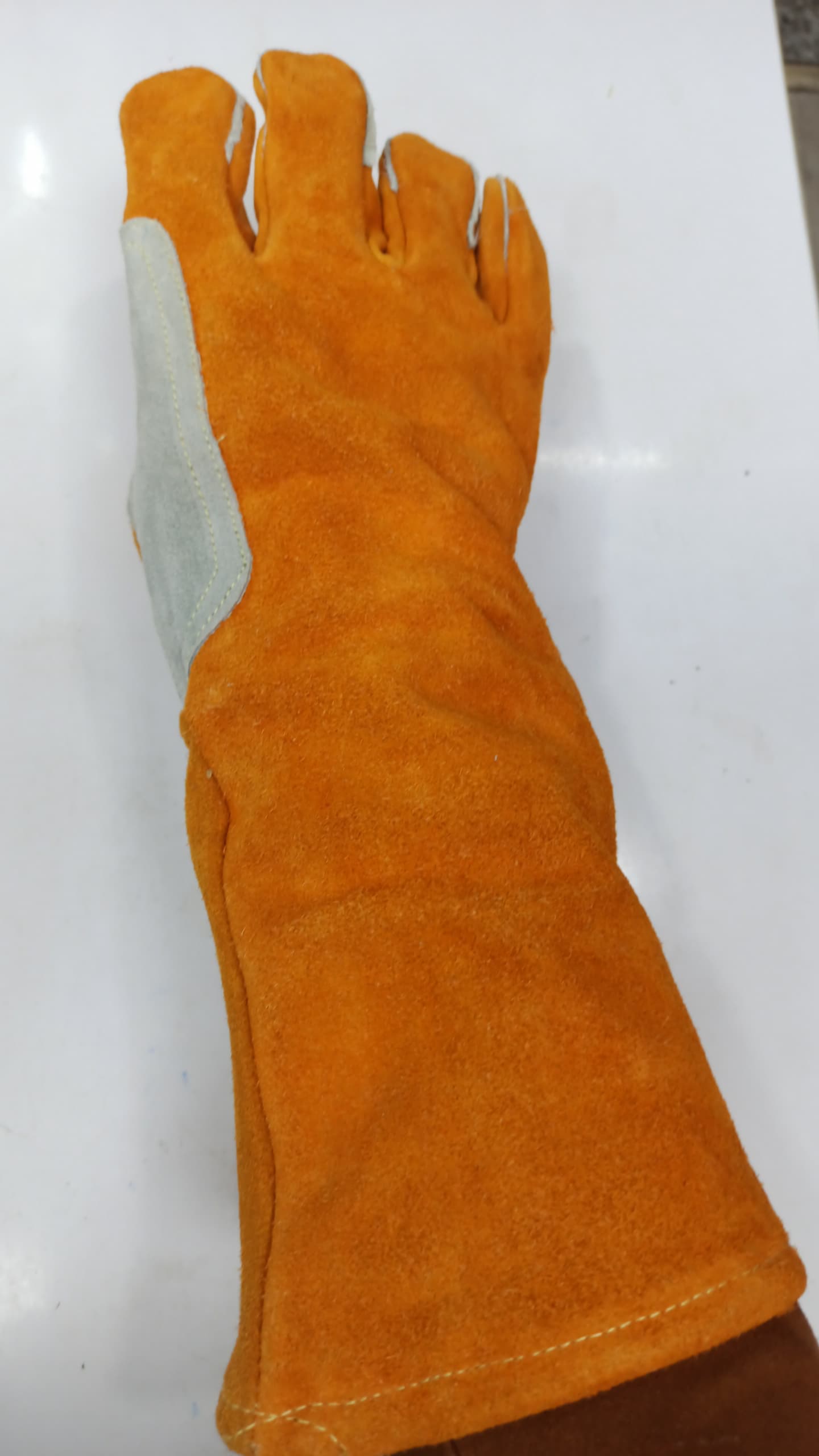 دستکش جوشکاری ساق بلند طرح فرانسوی درجه یک با نخ کولار